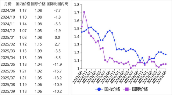 9 月份,进口大豆到岸税后成本每斤 1.99 元,环比跌 0.3%,同比涨 2.6%,比山东国产大豆入厂价低 0.34 元,价差比上月缩小 0.01 元。美国大豆离岸价折人民币每斤 1.44 元,比山东国产大豆入厂价低 0.89 元,价差比上月扩大 0.01 元。