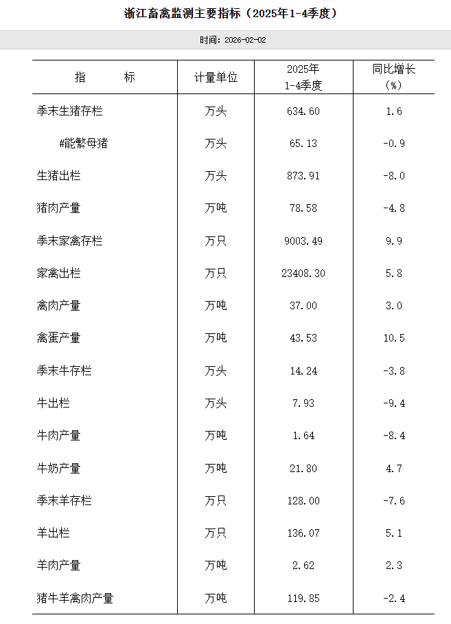 2025年浙江畜牧业数据统计