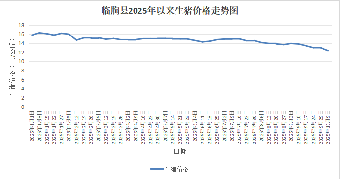 据临朐县第41周(10月9日)价格监测数据,进入10月份以后,生猪价格继续下滑,已降至12.4元/公斤,比上月下降10.41%,比去年同期下降29.55%。生猪价格从6月底开始下降,已持续3个多月,目前猪粮比价4.92:1,生猪价格已经低于盈亏平衡线,养殖场户已经出现亏损。