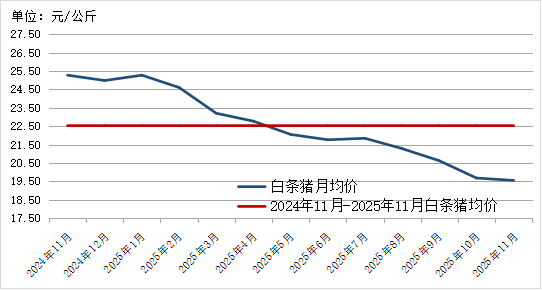 2024年11月-2025年11月白条猪价格走势