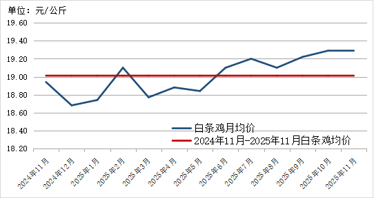2024年11月-2025年11月白条鸡价格走势