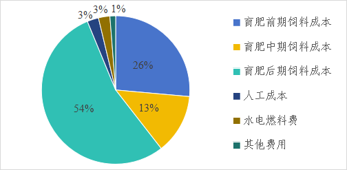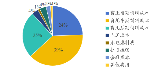 在饲料成本基础上,附加人工成本300元/头、水电燃料费100元/头、折旧摊销300元/头、金融成本200元/头,其他费用100元/头,共计约1000元/头,合计全周期总成本约8536元/头,育肥期公斤增重成本约17.07元。