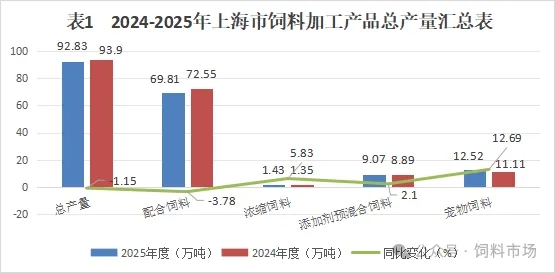 注:①2025年上海市饲料统计数据来源于截止2026年2月3日的中国饲料工业统计信息系统。