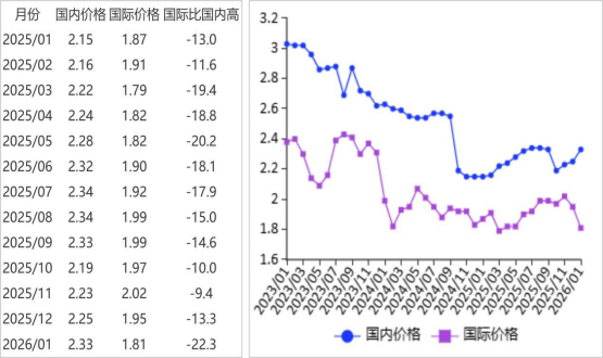 注:国内价格为山东国产大豆入厂价,国际价格为青岛港口的进口大豆到岸税后价。