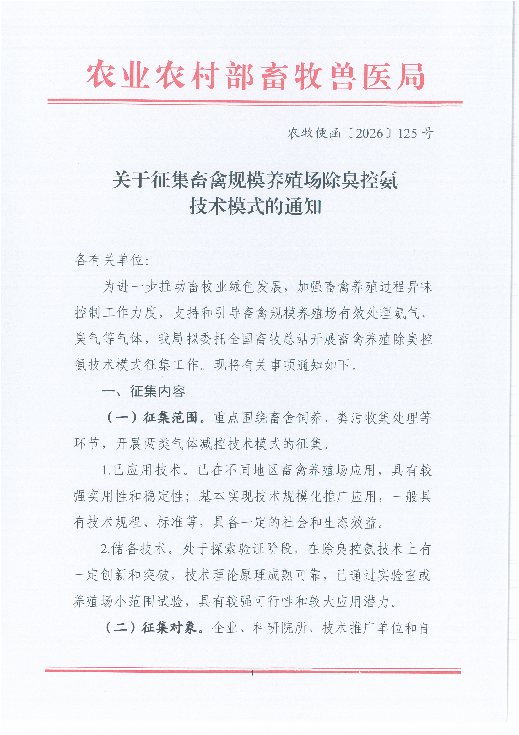 关于征集畜禽规模养殖场除臭控氨技术模式的通知