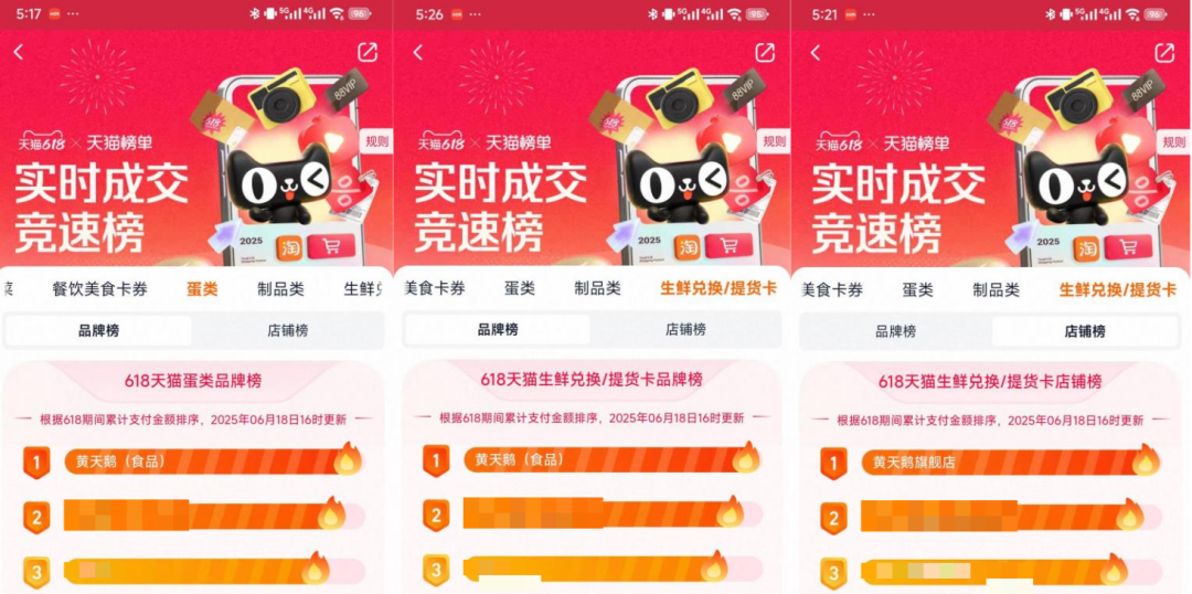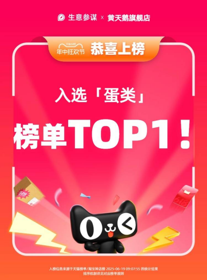 据天猫生意参谋数据显示,今年“6·18”期间(5月16日20点—6月18日24点),黄天鹅入选“蛋类榜单TOP1”,并在“蛋类品牌榜、生鲜兑换/提货卡品牌榜、店铺榜”等多个数据榜单中位列第一。此外,黄天鹅即食溏心蛋也位居溏心蛋类目第一。据了解,自2020年起,黄天鹅可生食鸡蛋已连续多年在“6·18”“双十一”等电商消费大促中荣登鸡蛋类目多项榜首,实现品类领跑。黄天鹅即食溏心蛋自2024年双十一斩获溏心蛋类目第一后,在今年“6·18”再度卫冕该类目榜首,持续领跑市场。
