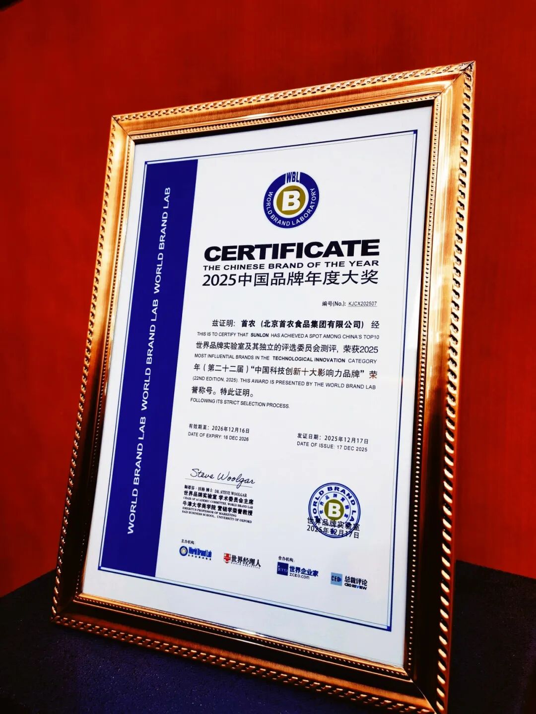 12月17日,由世界品牌实验室(World Brand Lab)主办的“2025年世界经理人峰会”在香港举行,备受瞩目的“中国品牌年度大奖”于会上隆重揭晓。经世界品牌实验室及其独立的评选委员会测评,首农食品集团凭借在农业、食品科技创新领域的突出表现和行业影响力,荣获2025年(第二十二届)《中国科技创新十大影响力品牌》荣誉称号。