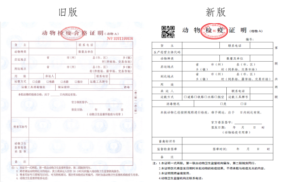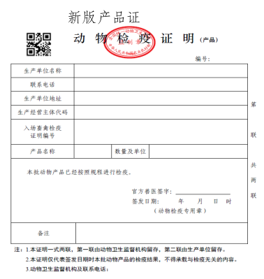 1. 动物A证(纸质证)