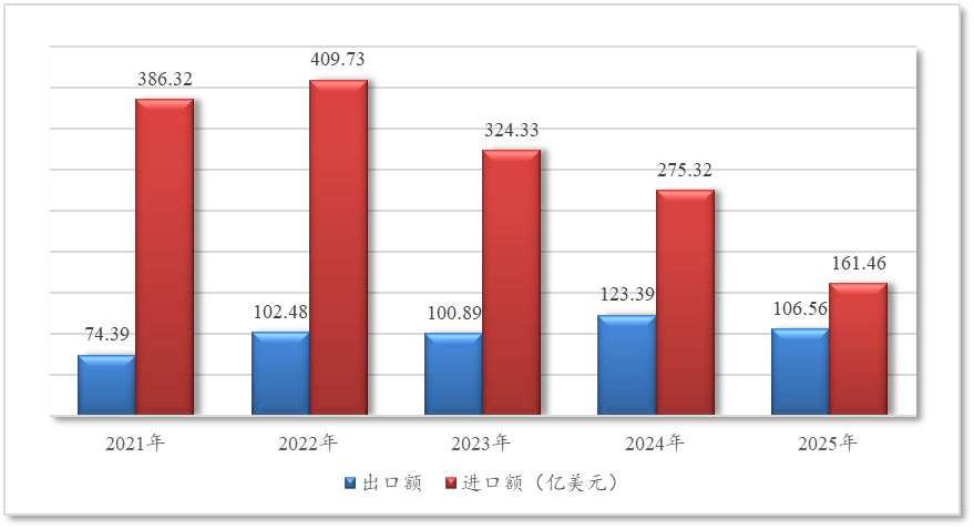 一、2025年,中美农产品贸易大幅下滑,进口降幅大于出口